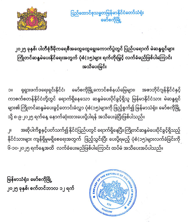 ၂၀၂၅ ခုနှစ်၊ ပါတီစုံဒီမိုကရေစီအထွေထွေရွေးကောက်ပွဲတွင် ပြည်ပရောက် မဲဆန္ဒရှင်များ ကြိုတင်ဆန္ဒမဲပေးနိုင်ရေးအတွက် ပုံစံ(၁၅)များ ရက်တိုးမြှင့် လက်ခံမည်ဖြစ်ကြောင်းအသိပေးခြင်း